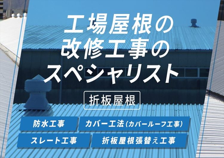 屋根の張替え工事は、防水工事やカバールーフ工事、部分張替えでも雨漏れが改善されない場合の最終手段です。スレートの張替え、折板屋根の張替えを行っています。